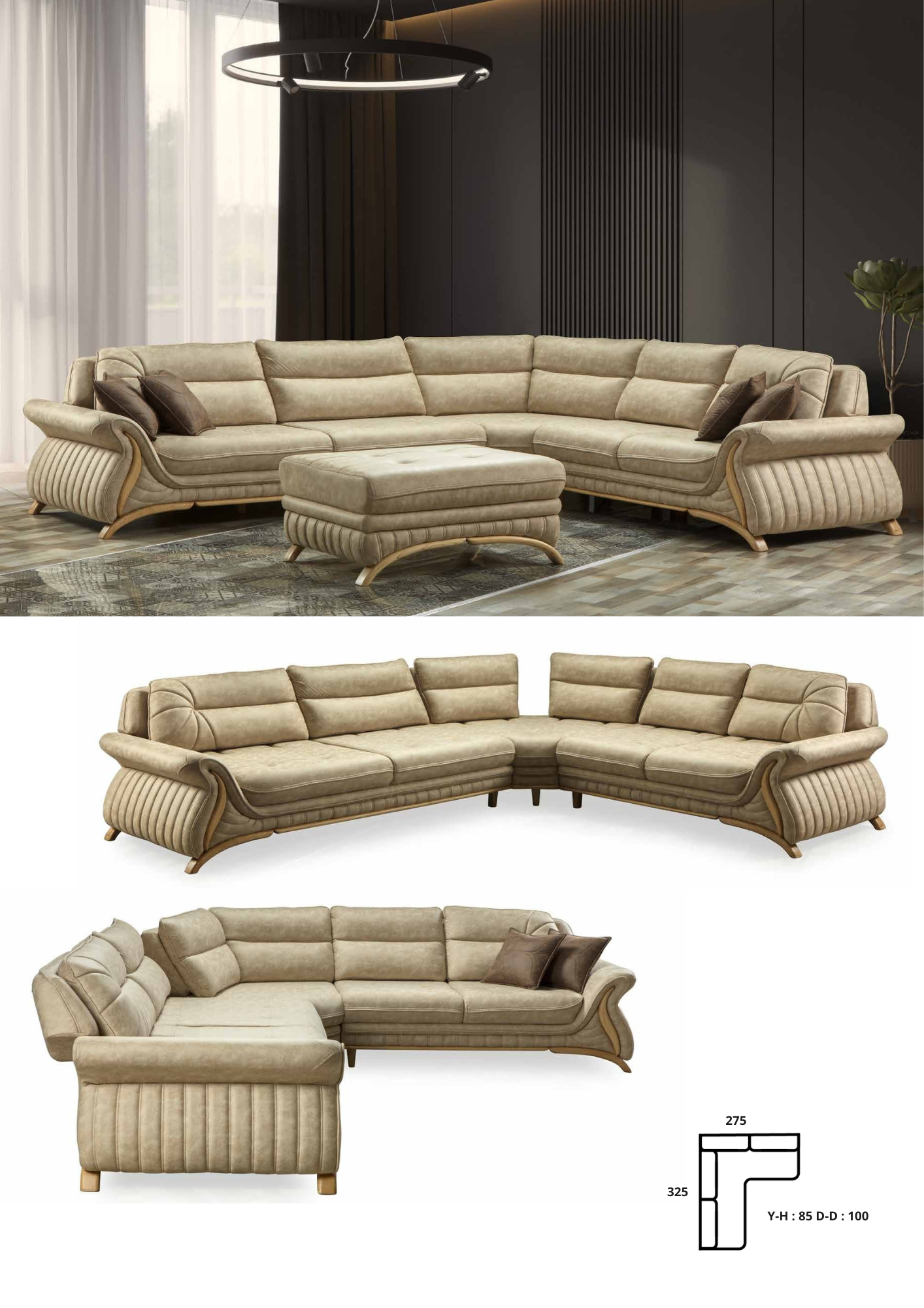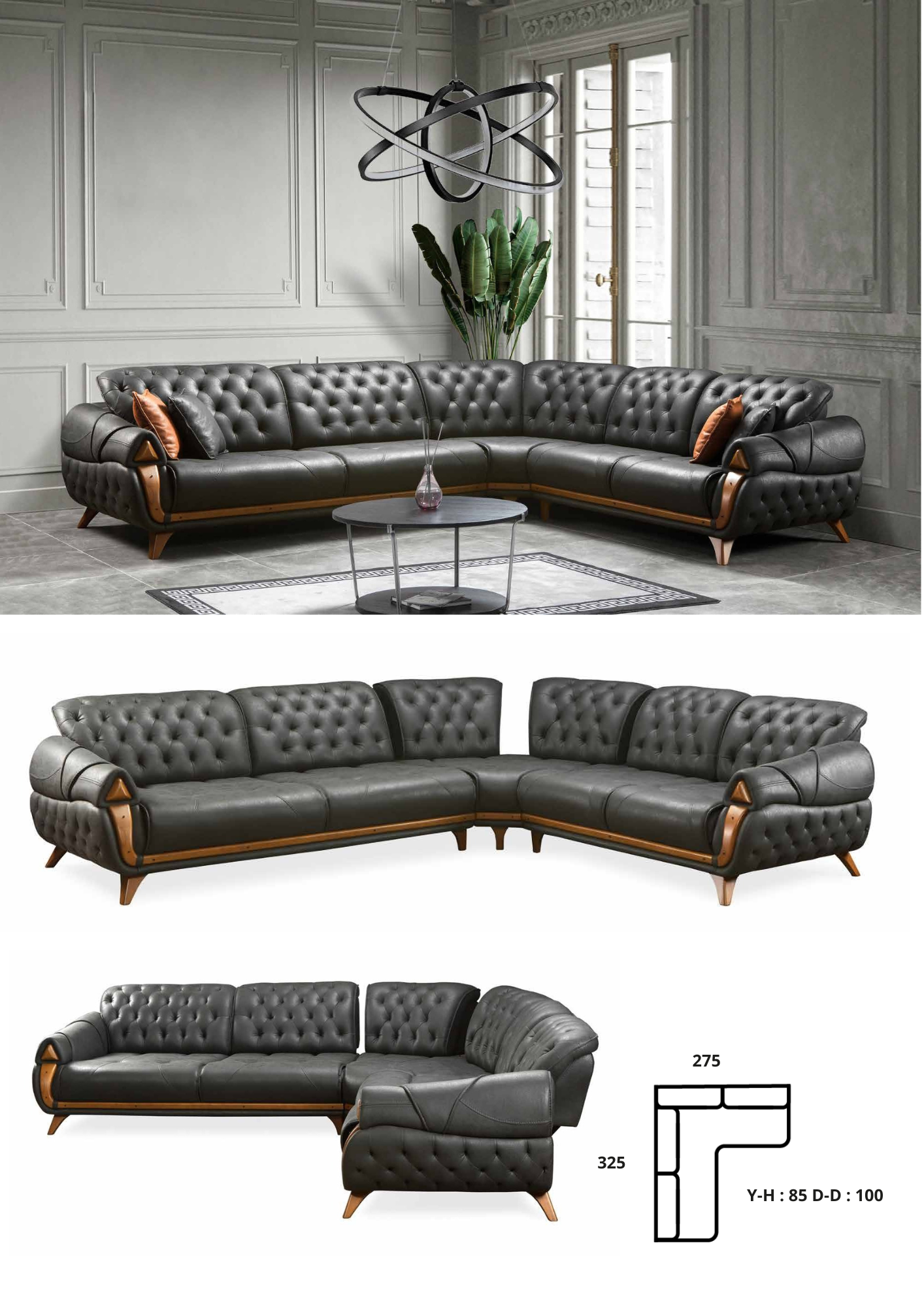 3’Lü / 3 Seater G-W : 240 Y-H : 85 D-D : 100 Berjer / Bergere G-W: 80 Y-H : 90 D-D : 95